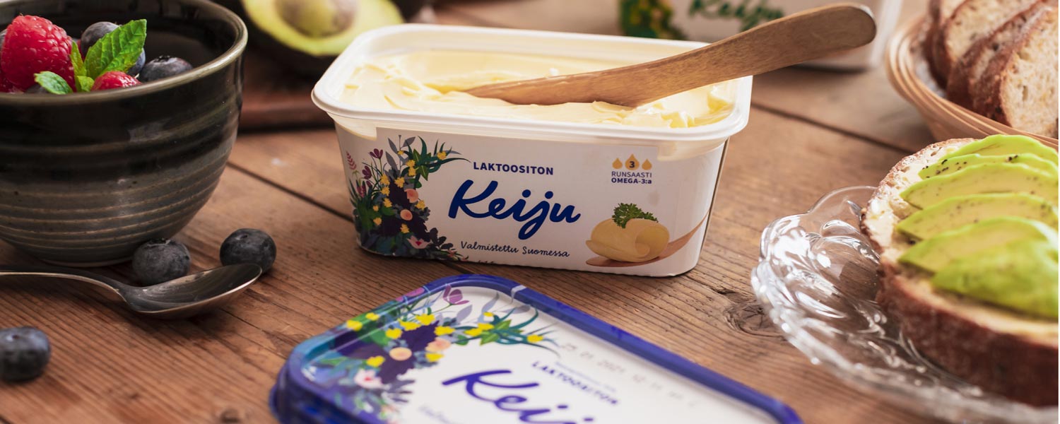 Toote pakkematerjalide valimisel on meie jaoks võtmeküsimused nii kvaliteetne toode kui ka toote ohutus. Erinevate pakendivariantide hindamisel võtame arvesse ka erinevate materjalide keskkonnamõju. Lisaks kvaliteetsesse sisusse investeerimisele on meie jaoks oluline, et meie tooted oleksid pakendatud võimalikult keskkonnasõbralikult. Kaardistame pidevalt uusi Keiju toodete pakendilahendusi, mis aitaksid minimeerida keskkonda koormavaid materjalijäätmeid. Aastal 2017 asendasime Keiju 400-grammiste võidekarpide plastkatte kartongiga; nüüd on karbis 39% vähem plastikut kui tavapärases karbis. See tähendab 400 grammi karpide osas plastiku vähendamist enam kui 18 tonni võrra aastas!